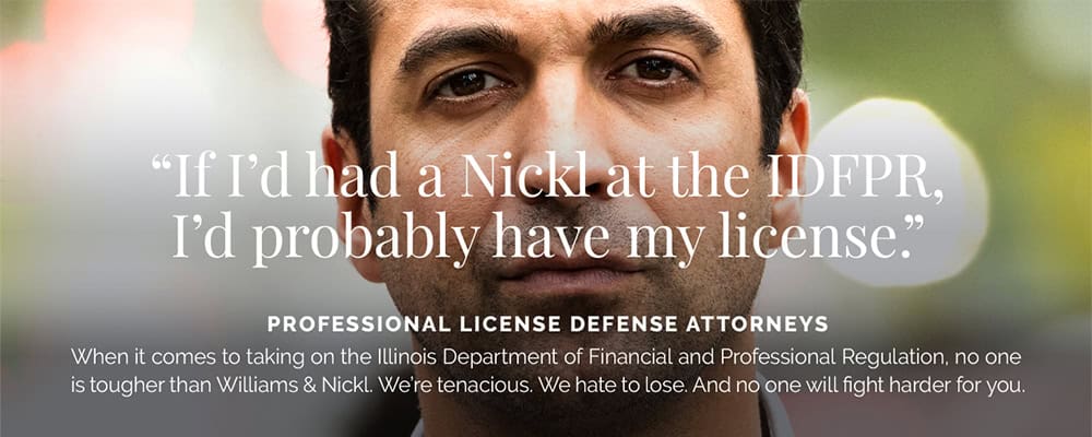 Attorney Edward Williams was the former chief of general prosecutions for the IDFPR and former chief of real estate and real estate appraiser prosecutions. He and Attorney Fred Nickl have assisted more than 3,000 clients in license defense cases.